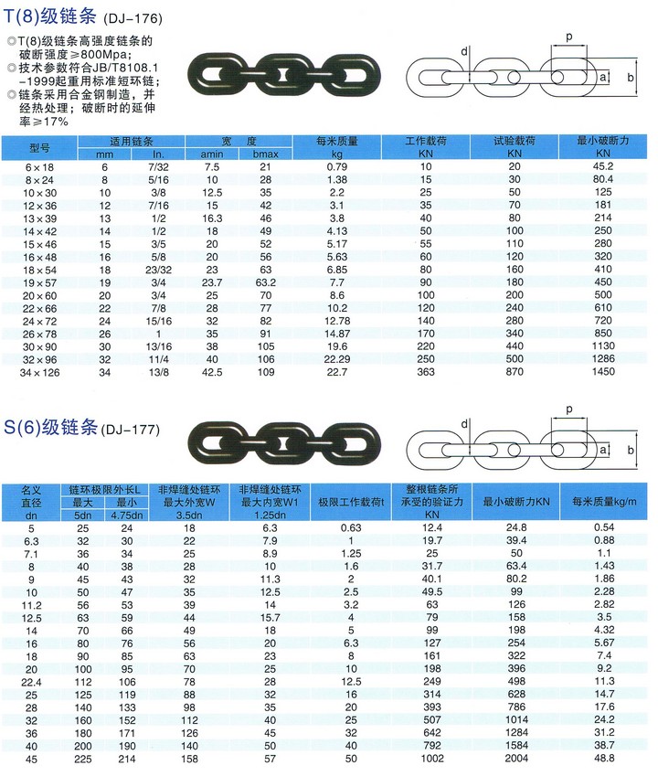 5、鏈條正常使用溫度范圍-40℃-200℃。鏈環之間禁止扭轉、扭曲、打結、相鄰鏈環活動應靈活。